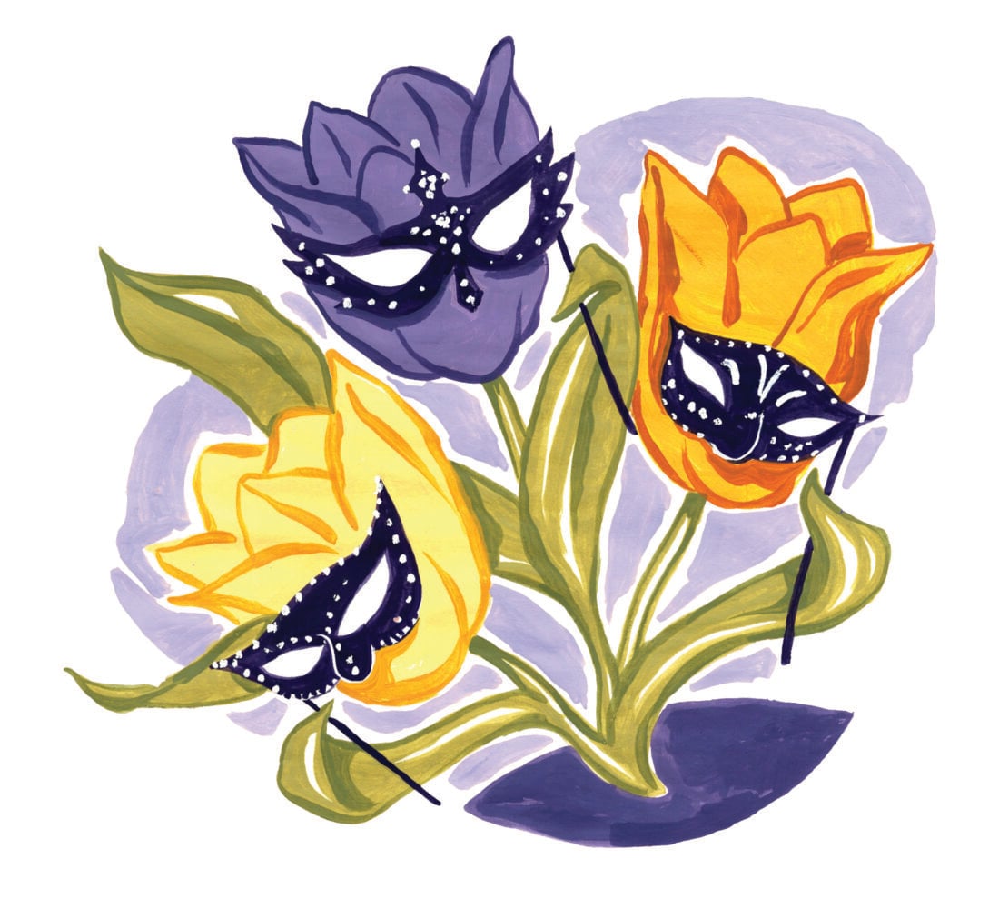 This spring, Dixon Gallery and Gardens in Memphis turns into a profusion of petals, including some 600,000 tulips—a rainbow of fringed, wild Asian, and double flowers, plus a custom golden-yellow tulip bred in the Netherlands for Dixon’s fiftieth anniversary. Add in the Memphis Garden Club’s “Masquerade” Flower Show (April 10–12), and Dixon’s seventeen acres achieve maximum blooming beauty. One of the country’s eight major Garden Club of America shows, the event features a keynote address by style mogul Aerin Lauder, and competitive displays. “I love pondering what from our personal gardens I and others might enter in the horticulture contest,” says Garden Club president Elizabeth Coors, who then echoes what most Southern gardeners are thinking each spring: “Will we have a late freeze? What will come up at the right time?” Around the gallery, dozens of creative floral designs will interpret and sit alongside whimsical paintings by the Memphis artist Mary Sims. “These aren’t your grandmother’s arrangements,” says Dixon curator Julie Pierotti. “They’re dramatic and avant-garde, combining plant materials like seedpods and bare branches with flowers.”