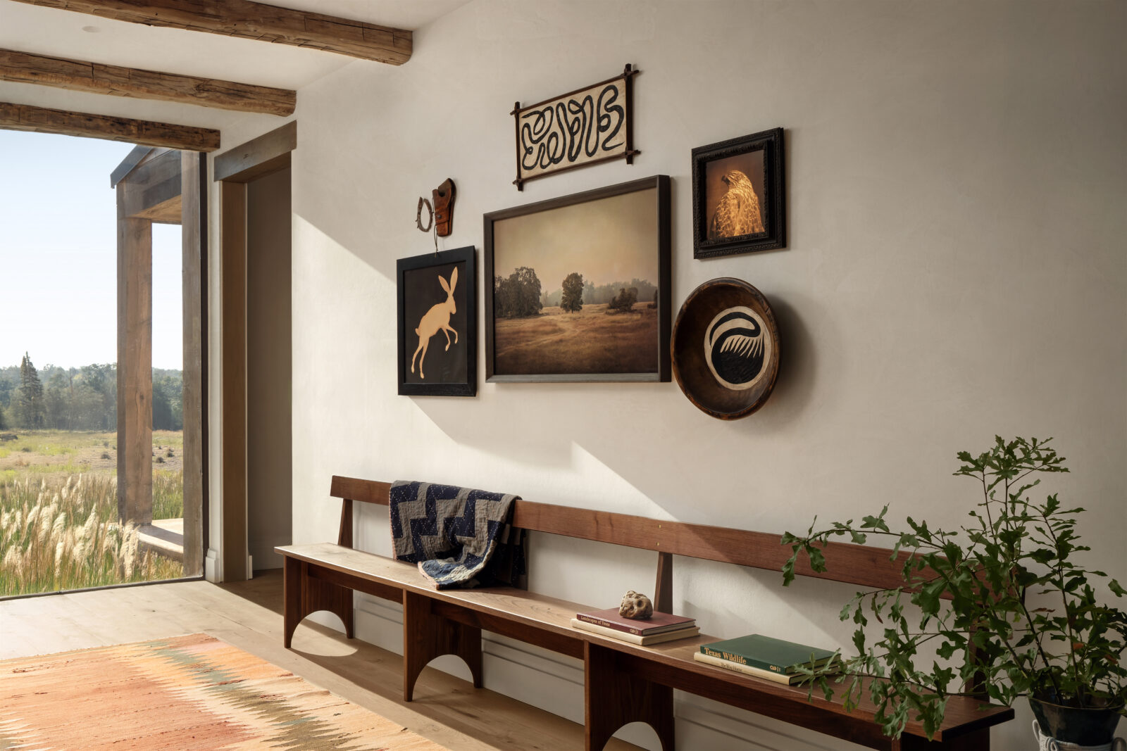 Artful functional pieces pop up in every corner, like the hammered silver sconce in a hallway and the hand-stitched leather bench made by the European-trained furniture maker Matthew Nafranowicz.