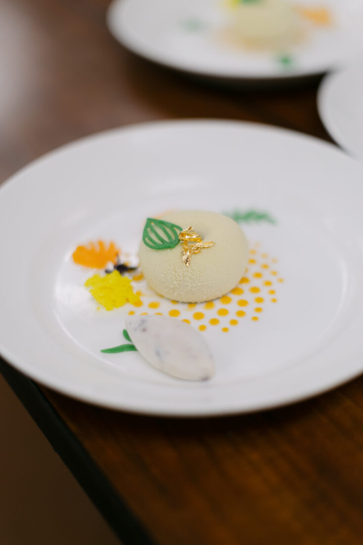 The Dolce Notte dessert: a pecan biscuit with vanilla coffee mousse and mascarpone cherry ice cream.