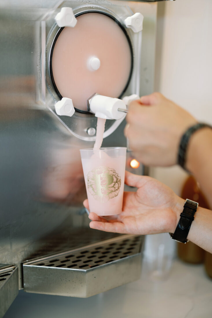 “The Nellie” Slushie composed of Penelope Four Grain, lemonade, and strawberry.